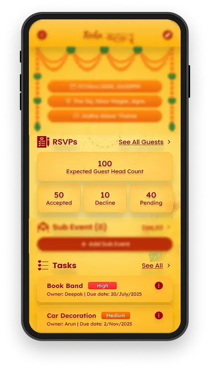 ManageMyShaadi gives families complete control over guest management. From creating digital invites and tracking RSVPs to predicting headcounts with AI and updating guests instantly, the app ensures nothing slips through the cracks. It’s secure, private, and designed for Indian weddings — so you celebrate without stress.