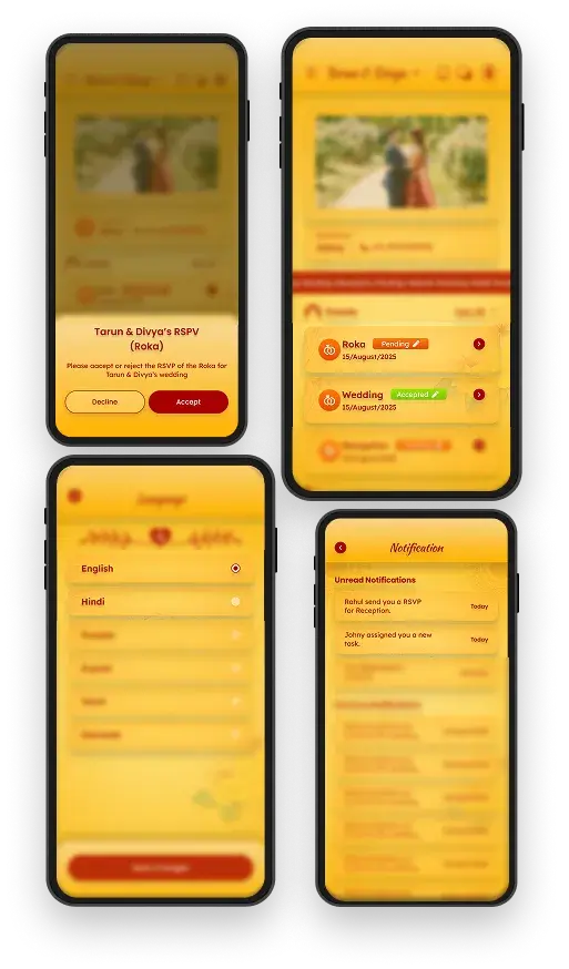 All wedding events in one timeline. Never miss the cocktail after the mehendi.